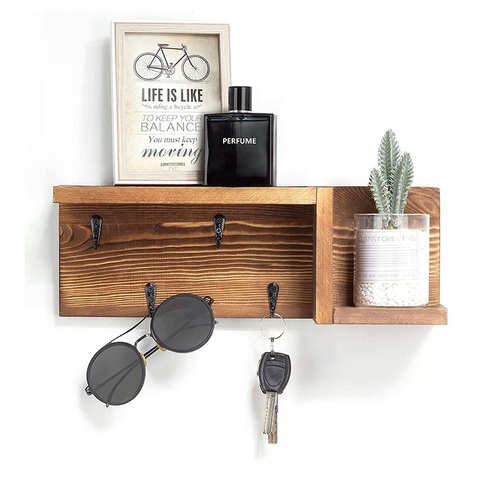 Prateleira de parede decorativa, prateleira rústica de madeira, metal e ouro